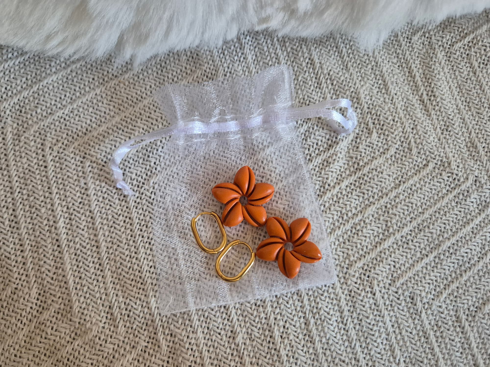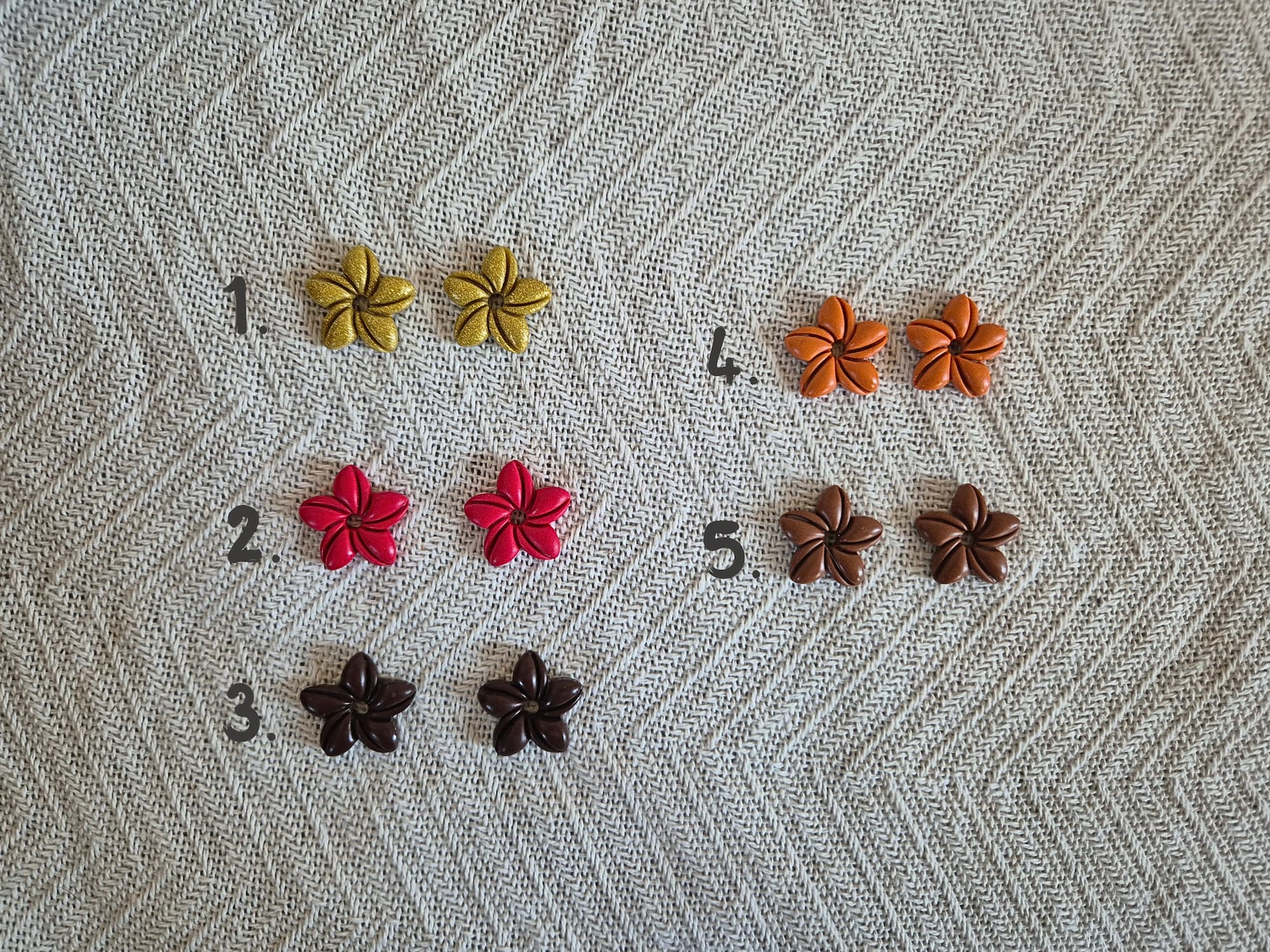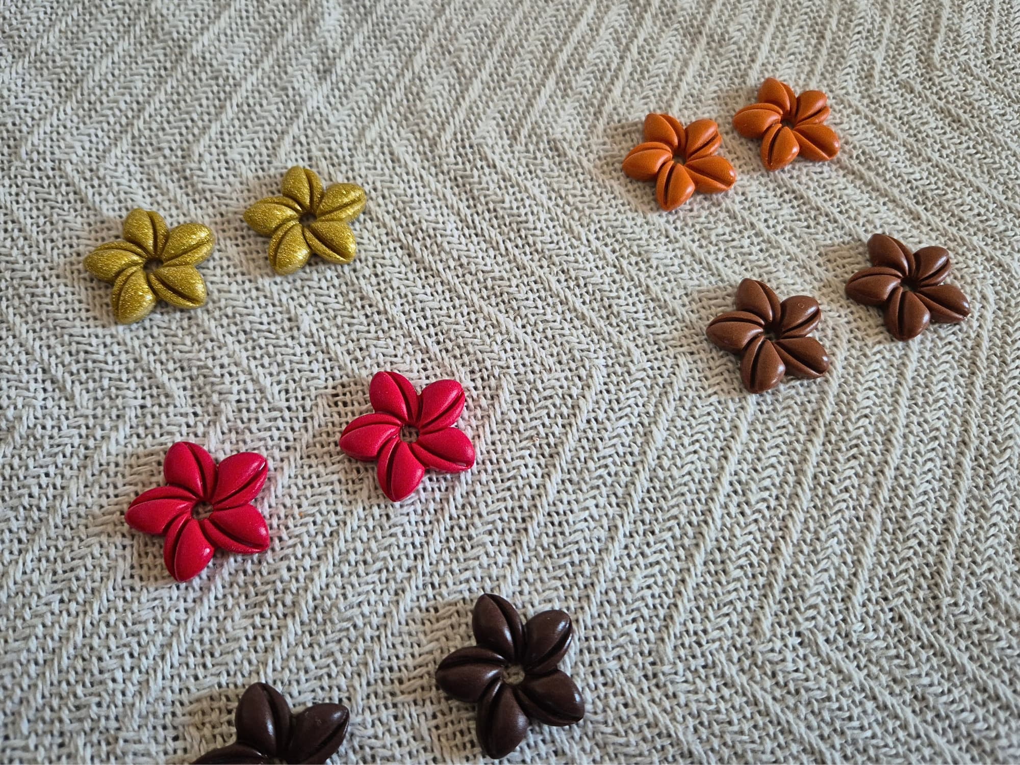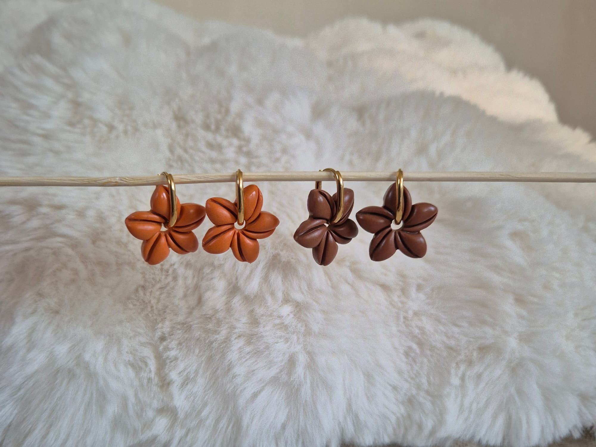 Les pampilles Mora sont des pampilles interchangeables en forme de fleur, fabriquées à la main en argile polymère dans mon atelier en Normandie.